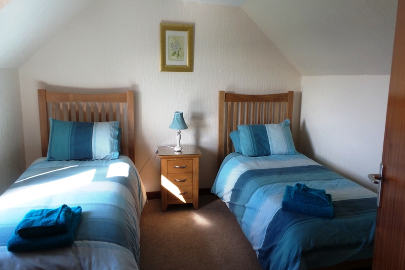 Master Bedroom with double size bed and built-in closet space.  Twin room with two single beds and plenty of storage. Both bedrooms have fabulous views of the Mull of Galloway and the surrounding countryside.   The family bathroom on the first floor has a spacious walk-in shower and a bath.